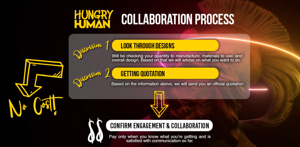 Hungry Human is the ideal partner for vinyl toy enthusiasts who are dedicated to achieving perfection in every tiny detail. Prior to beginning the prototyping and production process, there exists an abundance of enjoyable choices to be made concerning the figure’s design. Our initial focus will be addressing the most frequently asked inquiries concerning the transformation of characters into vinyl figurines. (I.E. Quantity, Design, Size, Materials, Timeline and Pricing)